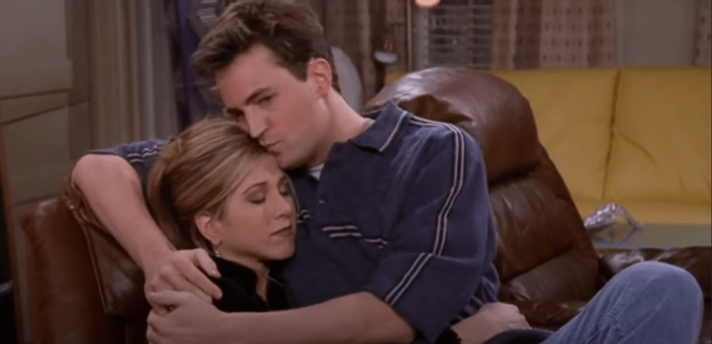 When Chandler has to say goodbye to Rachel at the end of Season 10, you can see they really care about each other. Rachel who gives off main character vibes, also symbolizes a part of our lives where we used to be lost and confused in our 20s, she leaves Chandler more complete than they were in Season 1. Rachel is in a way saying goodbye to Chandler and the situation their friendship developed in – now they are both moving on being parents, living someplace new, and starting new journies in life. It’s transformative to see them come together at the end, with lessons and laughs shared together, I really can appreciate the comical little storylines Chandler and Rachel supported each other with because they are two funny, strong characters.