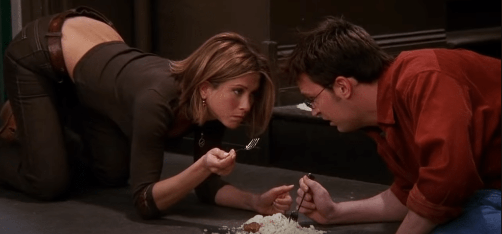 I also love the episodes where Rachel and Chandler set each other up on dates. We have Chandler being set up with Rachel’s boss Joanna and Rachel being set up with possible guys from Chandler’s work. What’s most important is that they are there for each other at the end of those set-ups to see how each other is, they give each other advice and make each other laugh. They are literally there to see each relationship they are in and how it turns out, they stick by each other through good and bad times – Rachel and Chandler are real friends.
