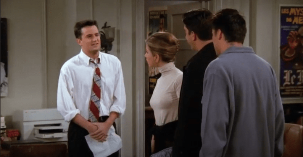 One of Rachel’s biggest decisions ever was quitting her job from Central Perk. This was a life changing moment for her as she soon finds out it will lead her to opportunities she could never dream of. Rachel’s career is one of the more inspiring ones I found to be; she came to the city with no job, no credentials or past work experience. She starts off at a coffee shop and once quitting decides to follow what she her passion in life is – fashion. She quits with no job lined up and panics, we see her going to job interviews and not getting them, we see her taking odd jobs to try and get promoted to what she actually wants to do. It is motivational to the viewers to see this, we all know what its like to be working at a job that is not your passion and the ups and downs of trying to get a job so it’s admirable to see someone else going through similar situations like Rachel.